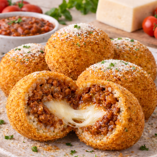 Delicious Arancini with Bolognese sauce Arancini Ragù Minced Beef Bolognese sauce & Mozzarella (Classic) - Ready to bake, Fry or Airfry!! * Ple...