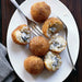 Vegetarian Arancini Rice ball, filled with mix mushrooms, béchamel sauce & Mozzarella cheese.
